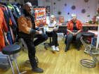 An diesem Abend interessierten sich auch einige für das Büromaterial, das ich in einem Extra-Regal aufgestellt hatte. Aber es hat noch immer viel davon (hier schau Dir die Bilder an davon - Seite noch in Arbeit), aber auch einige Gratis-T-Shirt z.B. vom «Jubiläums-Loveride 25» fanden ihren Weg. Die Schachtel dieser Shirts (wegen Winterwetter kam kaum jemand und die T-Shirts blieben liegen ...) war verschollen geglaubt und ich stiess per Zufall darauf, als mich jemand nach dem blauen Rallye-T-Shirt von 2007 fragte: Davon gibt's noch ganz wenige in M und in S (Unisex) |