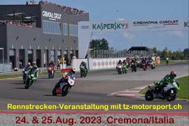 Rennstreckentraining in Cremona/I, 2 Tage am Do, 24. & Fr, 25.Aug., mehr dazu hier |