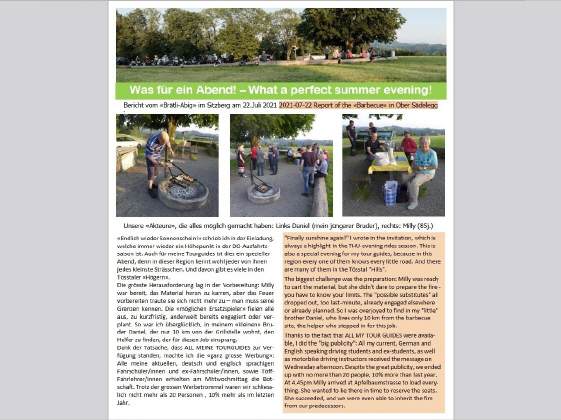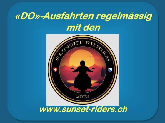 Aufgrund der überaus tollen Wetteraussichten für kommenden Donnerstag kam ich am Sonntag auf die Idee, die «Sunset-Riders» anzufragen, ob mein Vorschlag ihre Zustimmung finden würde. Tatsächlich (vielleicht aufgrund der bereits eigenen Erfahrung von 2021) war die Reaktion durchwegs positiv von allen fünfen! Zur Erinnerung: Fünf «Jungs» fanden, dass man die tolle Möglichkeit nicht sterben lassen darf, doch brauchte es einige Anlaufszeit, bis es schliesslich Ende Juni mit der ersten, offiziell ausgeschrieben Ausfahrt losging ... Inzwischen haben sie bereits 6 Ausfahrten ausgerichtet, aber noch nicht mit einer grossen Anzahl an Teilnehmer(inne)n, was ja für den Beginn auch besser ist! |