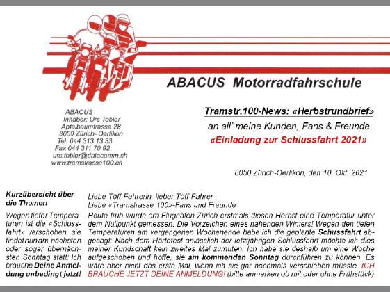 Erste Bilder und Bericht der «DO-Ausfahrt PLUS» vom 24.Okt. 21 hier |