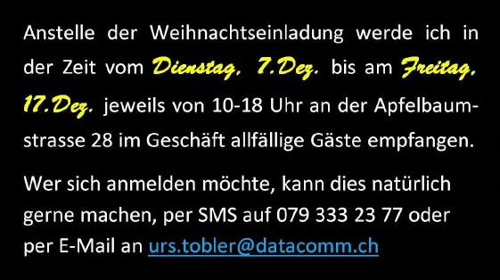 «WEIHNACHTSEINLADUNG» ABGESAGT, mehr dazu hier |