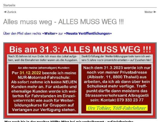 ab FR, 30.Juni bin ich wieder da für meine (wenigen) Kunden: Trotzdem frühzeitig die Fahrstunden abmachen, «s'het, so lang's het!» (per SMS 079 333 23 77 oder E-Mail)