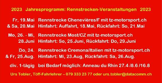 Rennstreckentraining in Anneau du Rhin/F, 2 Tage am Mi, 16. & Do, 17.Aug., mehr dazu hier |