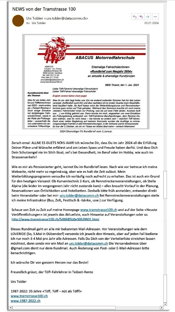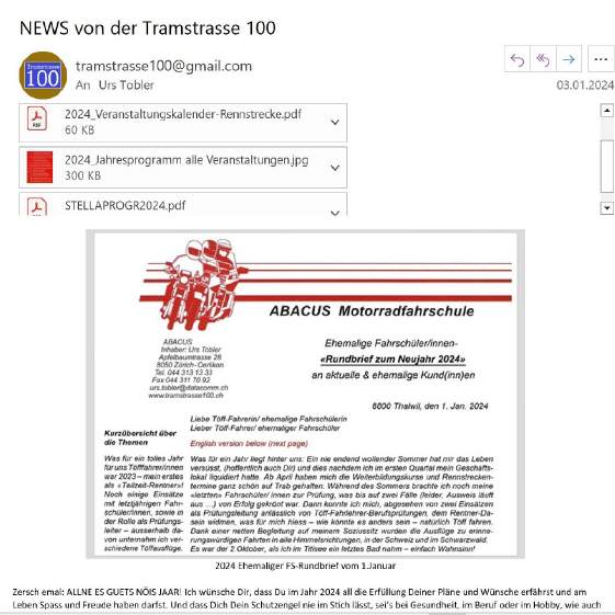 2024-01-03 Mail News von der «Tramstrasse 100» |