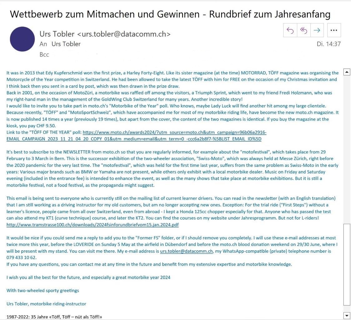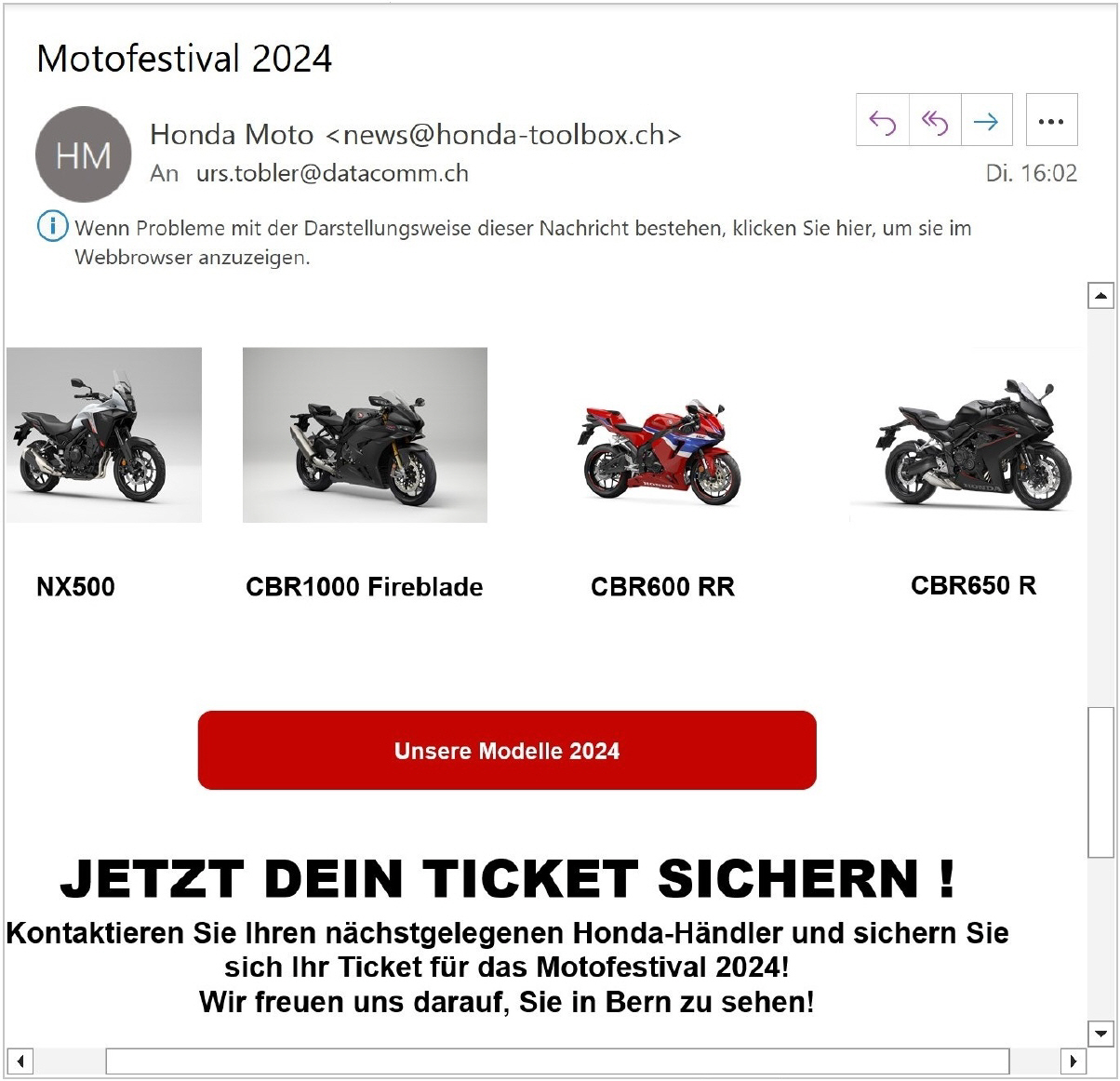 HONDA am «motofestival», E-Mail vom 30.Jan. 24, mehr dazu hier
