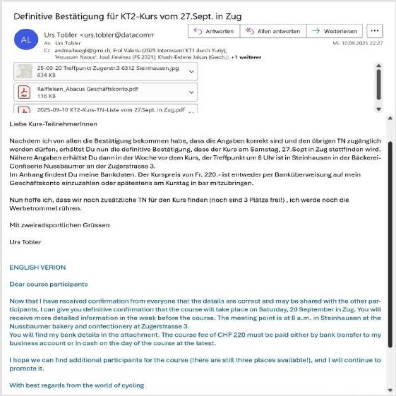 E-Mail vom 12.Aug. 2025 wegen weiteren KT-Kursen |