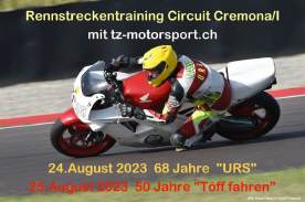 Rennstreckentraining in Cremona/I, 2 Tage am Do, 24. & Fr, 25.Aug., mehr dazu hier |