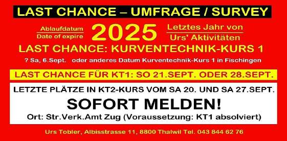 Kurventechnik-Kurs 2: Nur 2 TN offen, am Samstag, 22.April in Zug, mehr dazu hier |