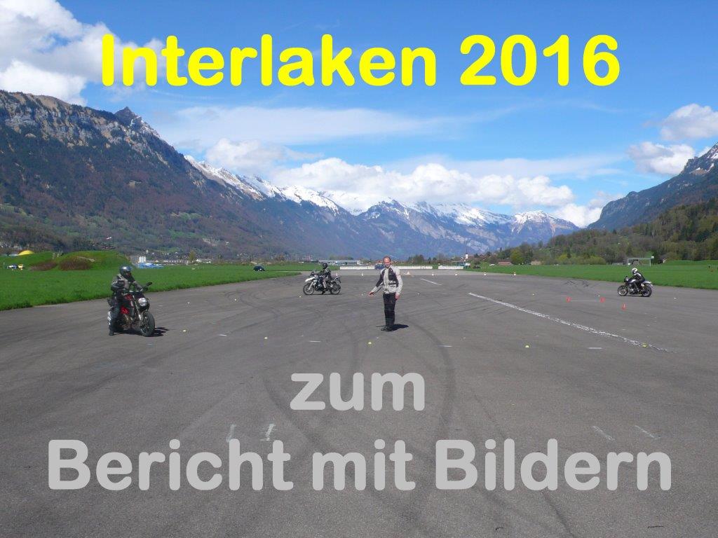 Dieses Bild entstand kurz nach 16 Uhr: In der Schlussübung mussten die Teilnehmer in der Schräglage auf Befehl des Instruktors anhalten - das klappte ja eigentlich gut, nur in der Rechtskurve will die Maschine abgefangen werden vor dem Stillstand! Denn mit eingeschlagenem Rad kippt sie naturgemäss ein ... w.z.b.w oder in Lateinisch: q.e.d.