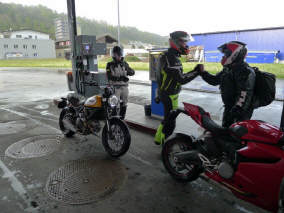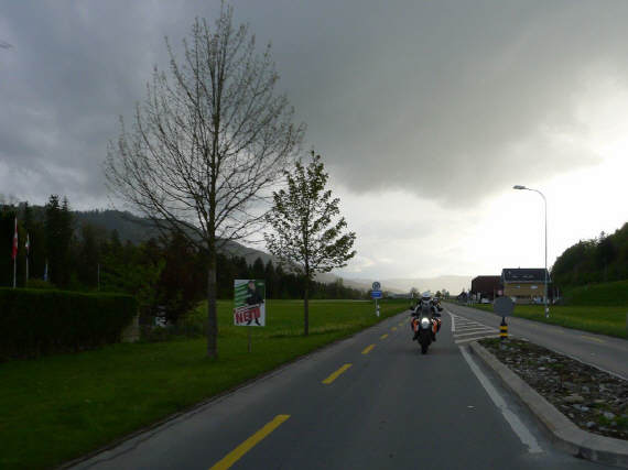Das Wetter am Mittwoch, 3.Mai war durchzogen, aber im Verlauf des Tages sollte es besser werden: Einmal mehr starteten wir in zwei Gruppen. Arthur und Roman legten ihren Weg über vorwiegend auf trockenen Strassen zurück, bei uns war es am Start trocken, erst im Raum Schallenberg gab es ein paar Regentropfen. Soweit begleitete uns also das Wetterglück!