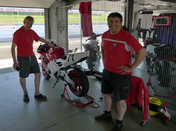 Eigentlich planten wir die Rennstreckenveranstaltung in dem tschechischen Most zu dritt zu besuchen: Doch Petr musste seine Maschine bereits am Mittwoch für den Transport abgeben. So startete ich zusammen mit Claudio am Sonntag, 6. August mit meinem HiAce-Bus mit den beiden Maschinen im Gepäck über die deutsche Autobahn auf die lange Reise. Die Rennstreckenveranstaltung von tz-motorsport.ch in Most ist die zweite auf meinem Veranstaltungskalender 2017, für die erste hatte sich leider niemand gemeldet, obwohl sie sehr attraktiv in der Brücke von Auffahrt zum Sonntag und nahe der Schweiz lag. Ich fuhr mit meiner betagten Honda CB600F im Renntrimm, Claudio seine Ducati Panigale 899. Als er auf Slicks wechselte, war er nicht mehr zu halten: Das Bild links zeigt mich vor Claudio, als er noch langsamere Zeiten fuhr
