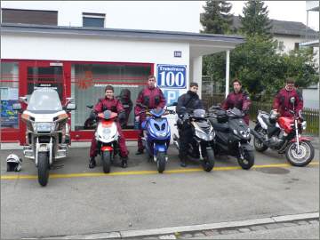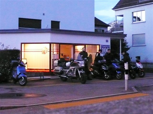 Frühmorgens, bereits um 07.45 Uhr an der Tramstrasse zu sein, ist im Winter kein Honigschlecken! Doch alle 5 Teilnehmer fanden sich pünktlich ein: Der Jahreszeit entsprechend alles Rollerfahrer! Noch nicht ganz angepasst war teilweise die Kleidung, doch bei Temperaturen von gegen 12 Grad am Mittag kam niemand in «grössere» Not...