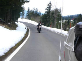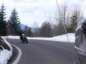 Über Gattikon ging unsere erste Ausfahrt über den Albispass nach Baar, wo wir über den Zugerberg und den Ägerisee den zweiten Pass, den Raten, unter die Räder nahmen. Nach so kurzer Fahrt gelüstete es meinen Schatz noch nicht nach Pause und so fuhren wir gleich weiter, in Richtung Einsiedeln, dem Sihlsee entlang zur Sattelegg. |