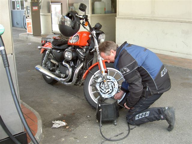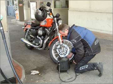 Ich war wohl am meisten erstaunt, dass die 883er-Sportster meiner Freundin auf den ersten Knopfdruck ansprang: Getriebe in Neutralstellung, Choke voll gezogen, ein paar Sekunden den Starterknopf drücken und schon blubberte es dumpf aus dem Auspuff der «kleinen» Harley. |