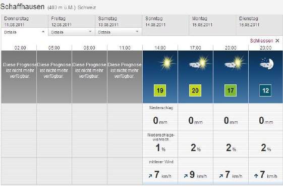 Detail-Aussichten ZH für Donnerstag, 11. Aug. |