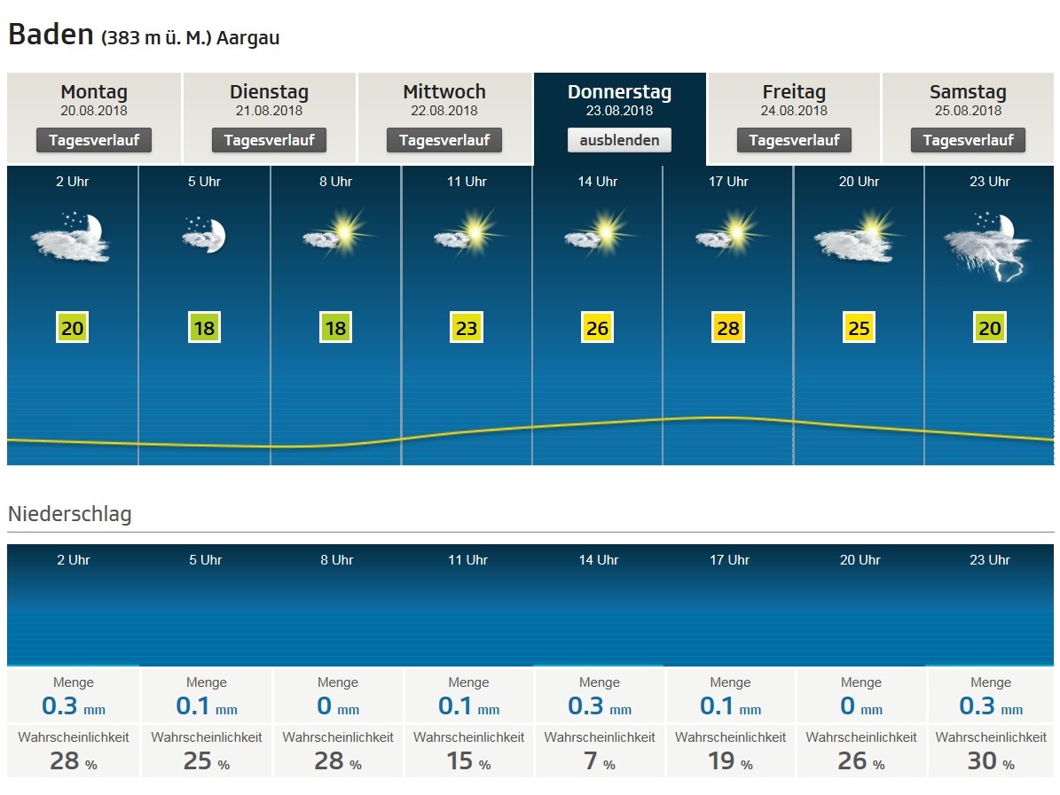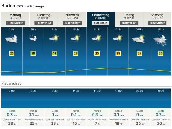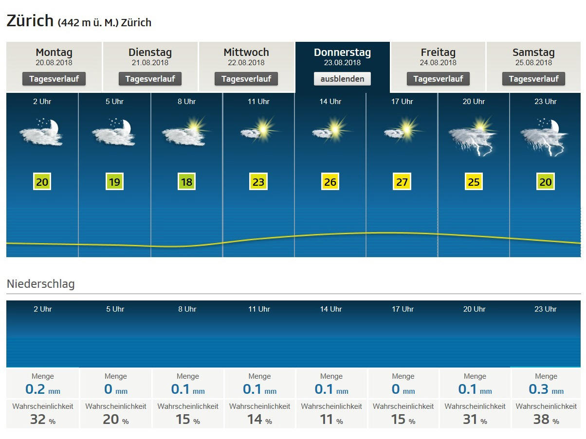 Züri-Wätter-Details für Donnerstag, 23.Aug. 2018 |