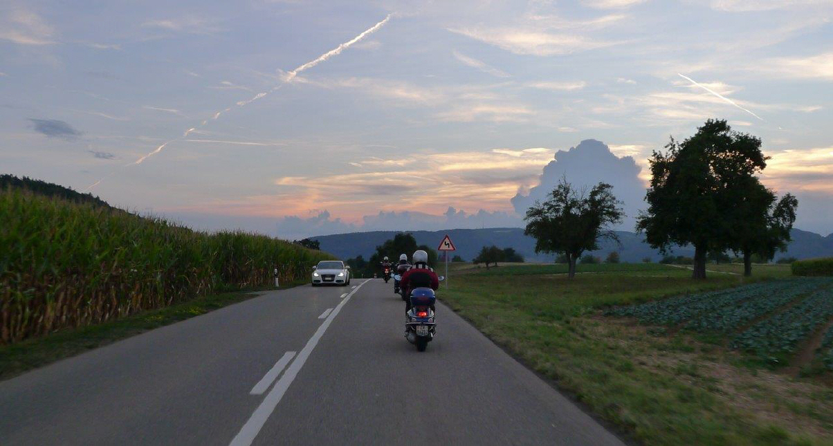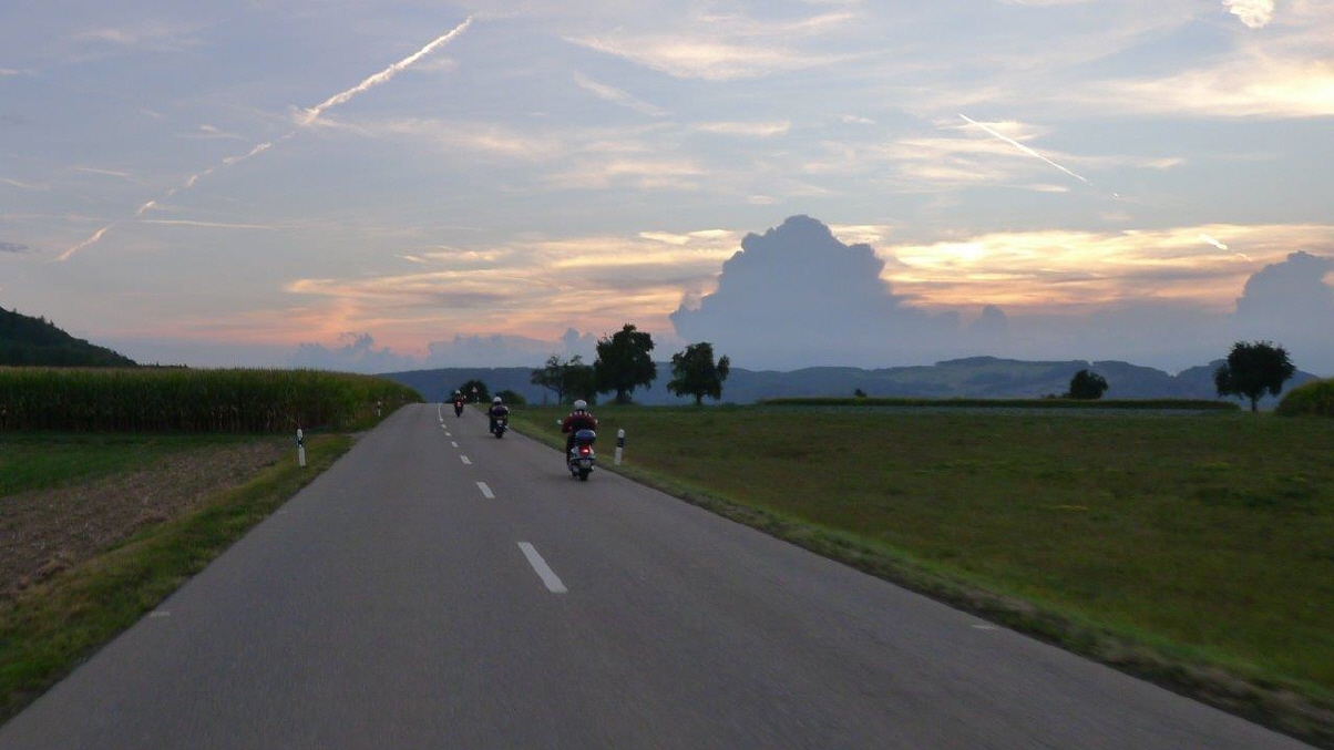 Am letzten Donnerstag herrschte um 18 Uhr Grossandrang bei nur einem Tourguide: Insgesamt 11 Personen starteten, die grosse Gruppe erreichte nicht ohne Zwischenfälle (der vordere ist verantwortlich für den nächsten Fahrer!) das Ziel im Raten. Ich startete zusammen mit Renato um 19 Uhr mit zwei weiteren Teilnehmern. In Rüschlikon starteten sie zu dritt, es war ein herrlicher Sommerabend mit einem netten Ausklang im gastlichen Restaurant auf dem Raten. Mehr dazu hier