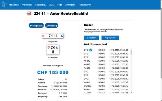 Sein Name in der Auktion: Z11Z, hier geht's zum Verlauf