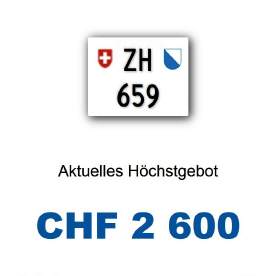 Am 21.05.2025 wurde im Kanton Zürich das nächste 3-stellige TÖFF-Nummernschild ausgegeben - in der Auktion ging es zum relativ guten Preis von Fr. 2600.- weg! Verfolge den Verlauf vom «ZH 659