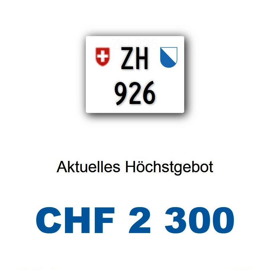 Am 11.06.2025 wurde im Kanton Zürich das nächste 3-stellige TÖFF-Nummernschild ausgegeben - in der Auktion ging es zum realistischen Preis von Fr. 2300.- weg! Verfolge den Verlauf vom «ZH 926