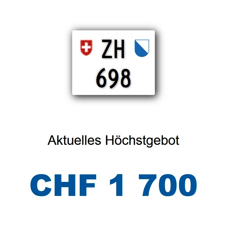 Am 18.06.2025 wurde im Kanton Zürich das nächste 3-stellige TÖFF-Nummernschild ausgegeben - in der Auktion ging es zum relativ tiefen Preis von nur Fr. 1700.- weg! Verfolge den Verlauf vom «ZH 698