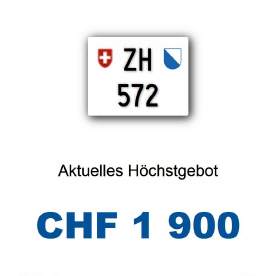 Am 09.07.2025 wurde im Kanton Zürich das nächste 3-stellige TÖFF-Nummernschild ausgegeben - in der Auktion ging es zum günstigen Preis von Fr. 1900.- weg! Verfolge den Verlauf vom «ZH 572