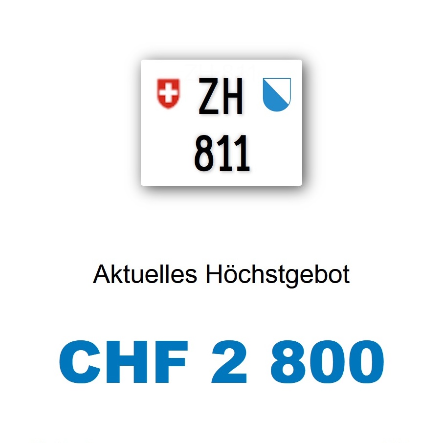 Am 7.8.2019 wurde im Kanton Zürich das elfte 3-stellige TÖFF-Nummernschild ausgegeben - in der Auktion dem Höchstbietenden: Verfolge den Verlauf «ZH 810