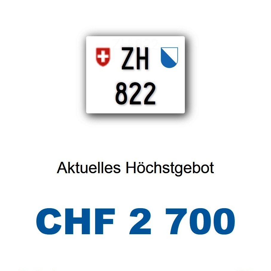 Am 27.08.2025 wurde im Kanton Zürich das nächste 3-stellige TÖFF-Nummernschild ausgegeben - in der Auktion ging es zum guten Preis von Fr. 2800.- weg! Verfolge den Verlauf vom «ZH 822
