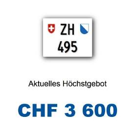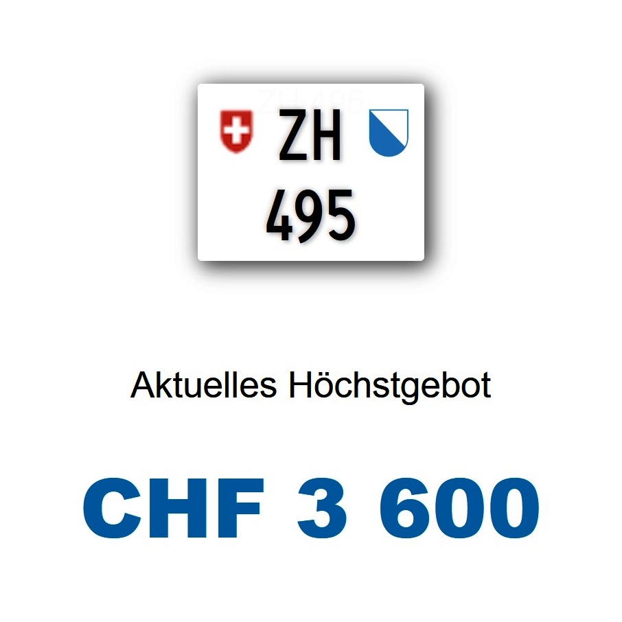 Am 10.09.2025 wurde im Kanton Zürich das nächste 3-stellige TÖFF-Nummernschild ausgegeben - in der Auktion ging es zum sehr guten Preis von Fr. 3600.- weg! Verfolge den Verlauf vom «ZH 495