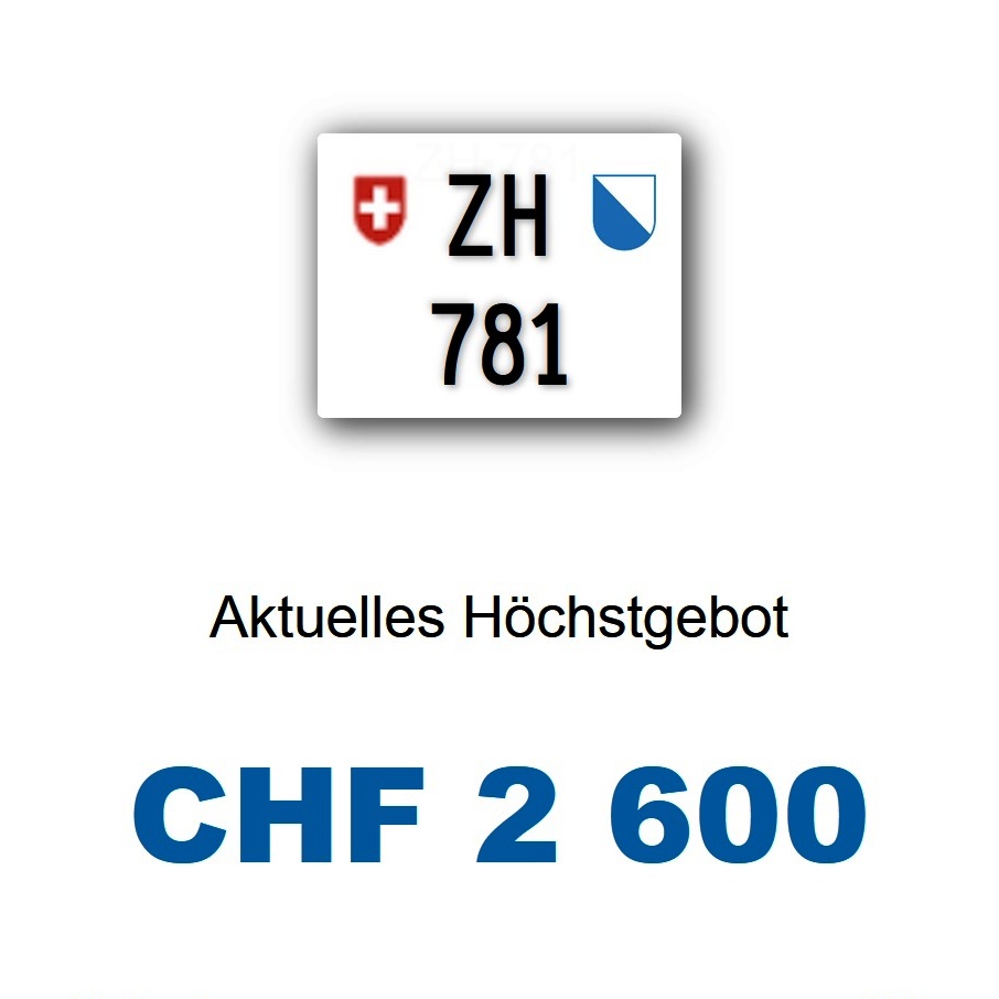 Am 08.10.2025 wurde im Kanton Zürich das nächste 3-stellige TÖFF-Nummernschild ausgegeben - in der Auktion ging es zum guten Preis von Fr. 2600.- weg! Verfolge den Verlauf vom «ZH 781