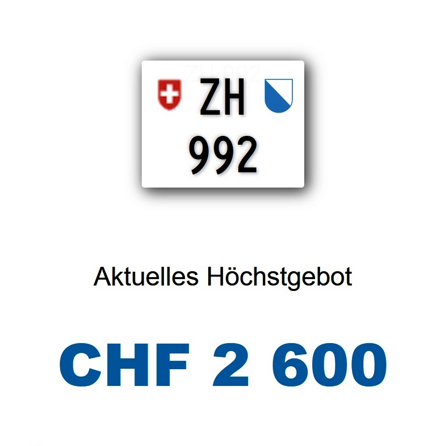 Am 01.01.2024 wurde im Kanton Zürich das nächste 3-stellige TÖFF-Nummernschild ausgegeben - in der Auktion ging es zum guten Preis von Fr. 3300.- weg! Verfolge den Verlauf vom «ZH 990