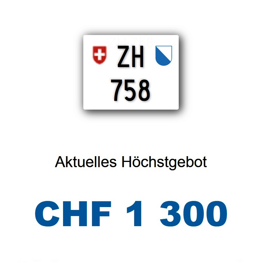 Am 12.11.2025 wurde im Kanton Zürich das nächste 3-stellige TÖFF-Nummernschild ausgegeben - in der Auktion ging es zum äusserst tiefen Preis von nur Fr. 1300.- weg! Verfolge den Verlauf vom «ZH 758