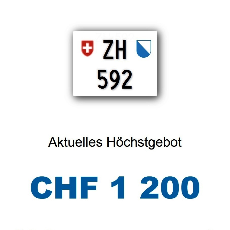 Am 19.11.2025 wurde im Kanton Zürich das nächste 3-stellige TÖFF-Nummernschild ausgegeben - in der Auktion ging es zum unglaublich tiefen Preis von nur Fr. 1200.- weg! Verfolge den Verlauf vom «ZH 592