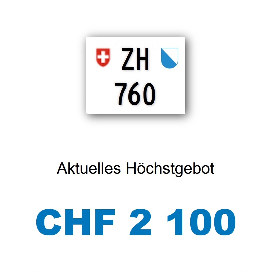 Am 24.12.2025 wurde im Kanton Zürich das nächste 3-stellige TÖFF-Nummernschild ausgegeben - in der Auktion ging es zum relativ guten Preis von Fr. 2100.- weg! Verfolge den Verlauf vom «ZH 760